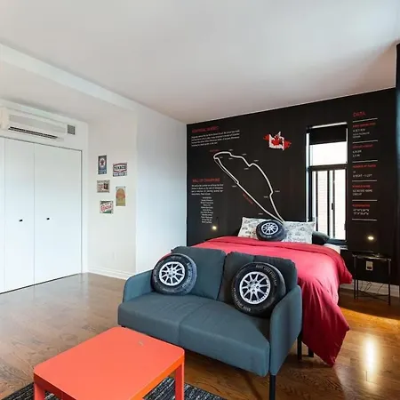 Apartmán The Grand Prix Suite In The Heart Of Mtl - M11 Rentals nabízí rychlý přístup k Kino Excentris Cinema a obsahuje výhledy na město. Letiště Montreal, Quebec se nachází 20 km od ubytování, zatímco stanice metra Place des Arts je pouhých 5 minut pěšky.